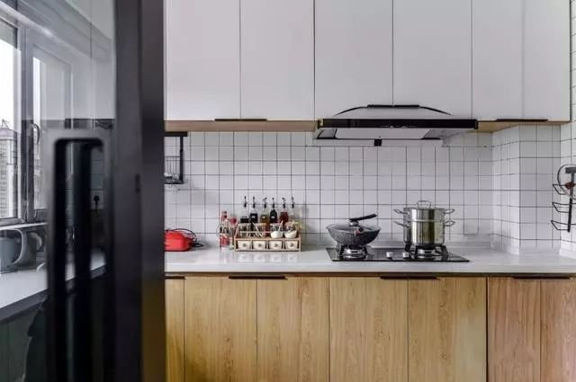 入住后的厨房增添了浓郁的生活气息,白色与原木色系的厨房给人清爽轻盈的视觉感受。